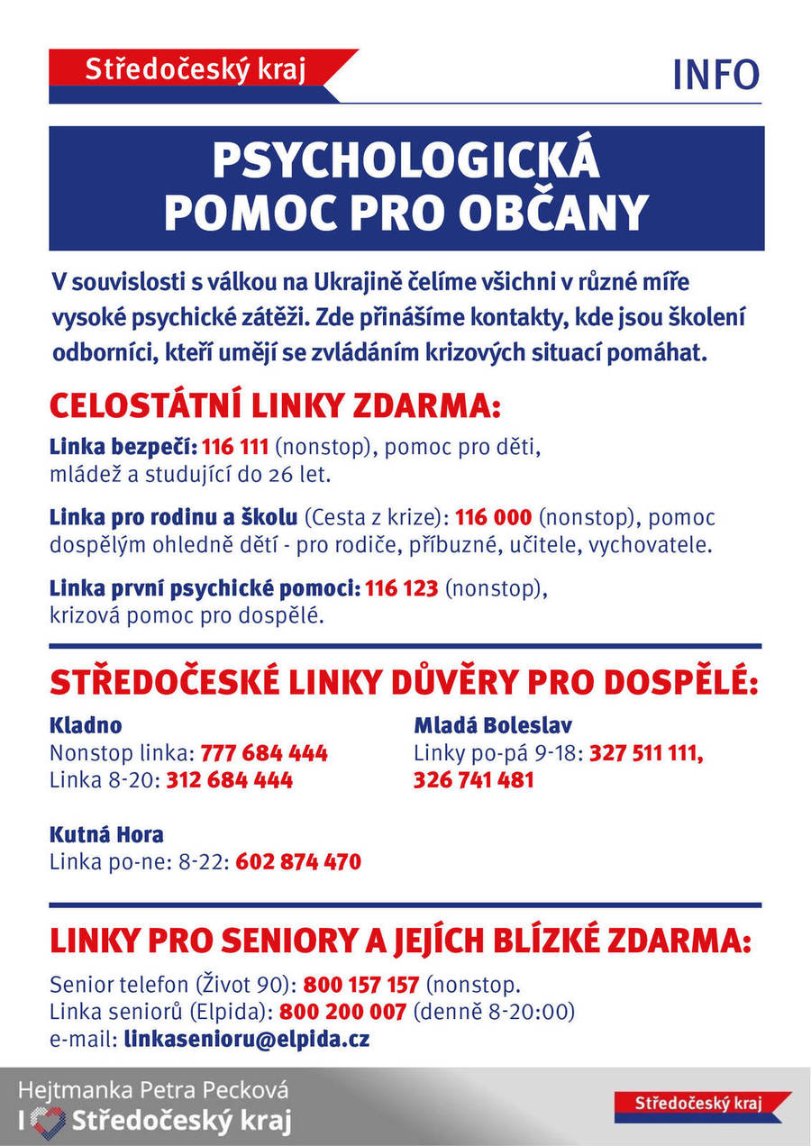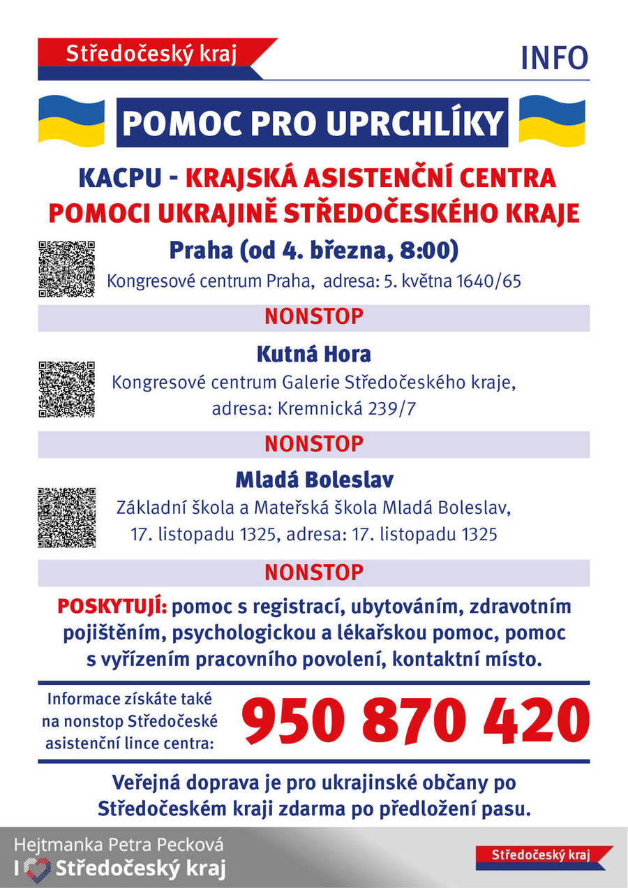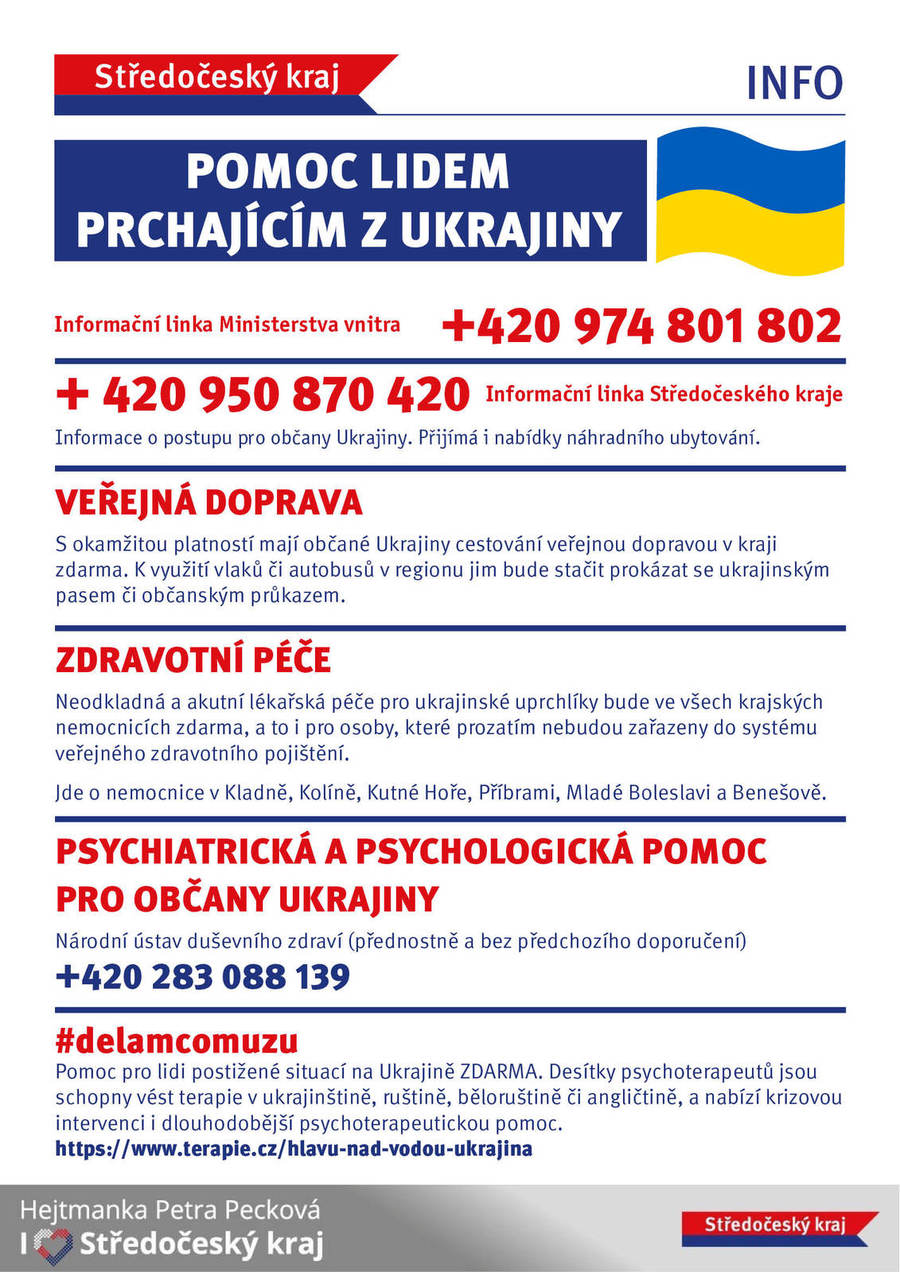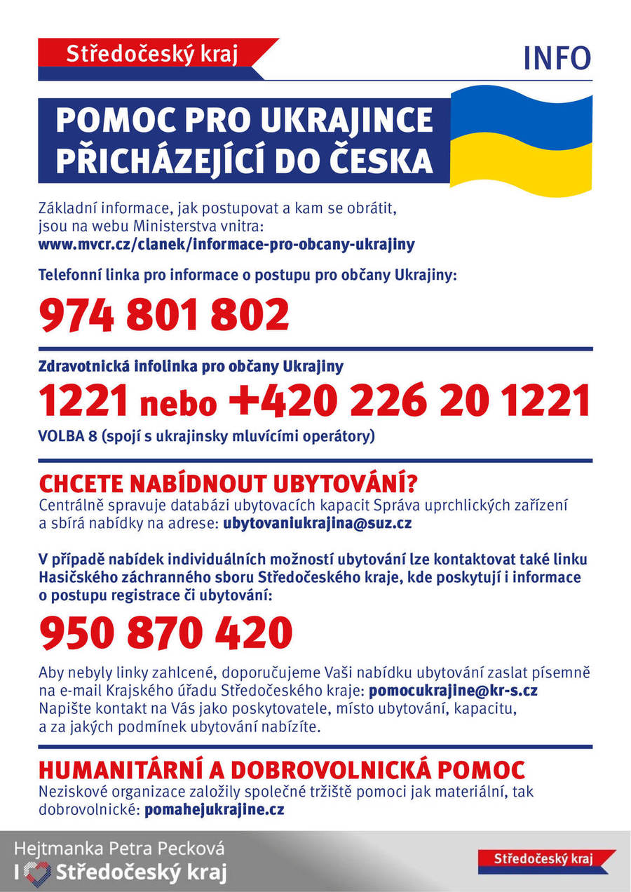 V souvislosti s očekávanou migrační vlnou z Ukrajiny vydal Středočeský kraj přehled informací pro obce i české a ukrajinské občany, jak postupovat a kam se obrátit.