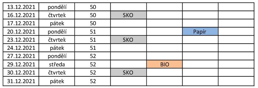 pro přehlednost uvádíme svozy odpadů do koce roku 2021.