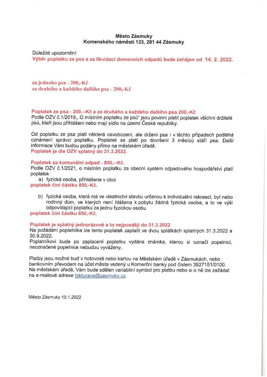 oznamuje, že ve dnech 18.2.2022 - 3.3.2022 bude proveden odečet elektroměrů v Zásmukách.