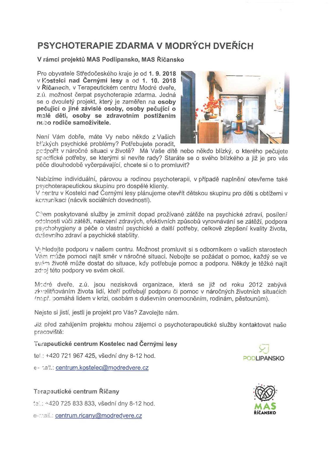 Psychoterapie zdarma v modrých dveřích
