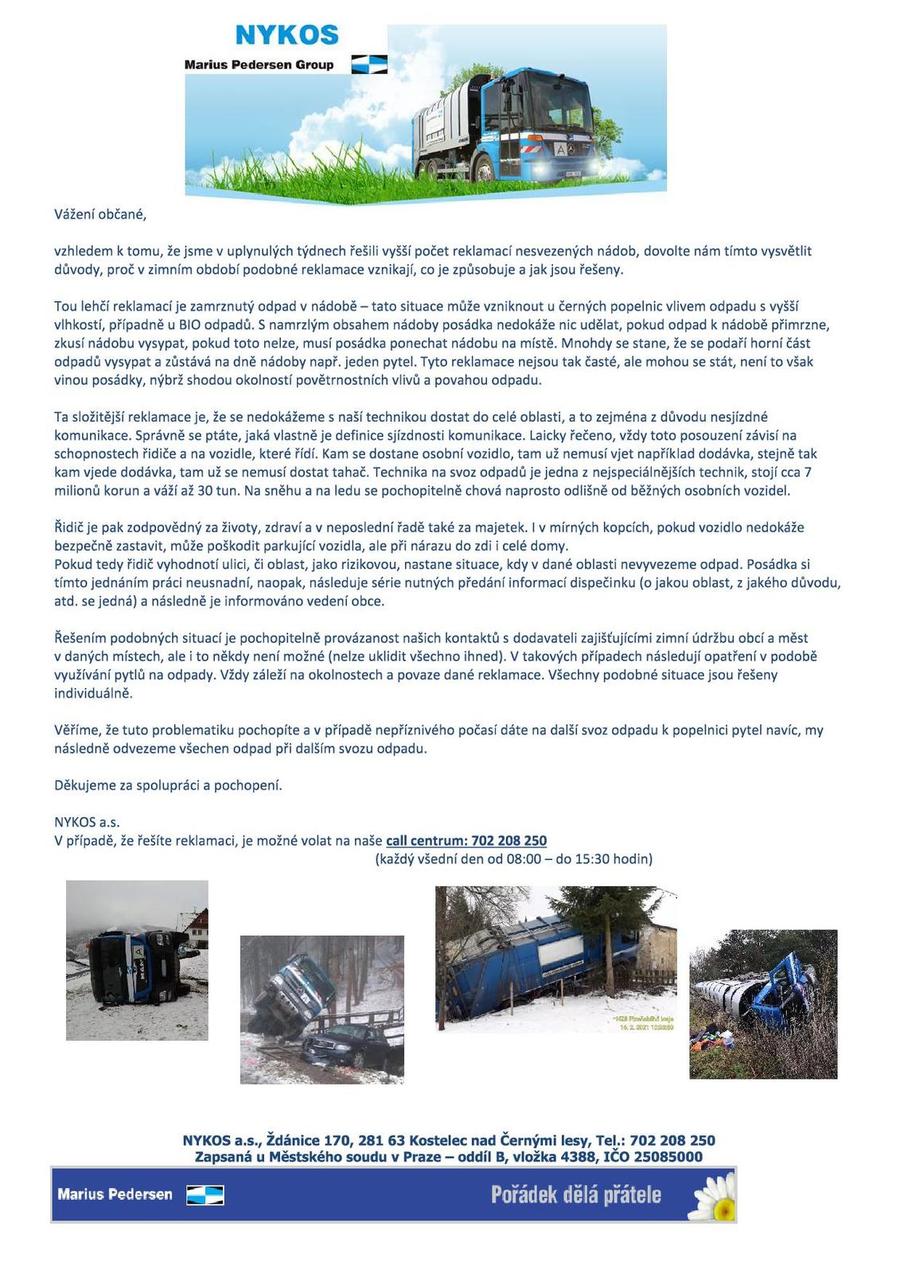 sběrné místo pro odpady V zimním čase:  Středa 12:00 – 16:00   Sobota 8:00 – 12:00