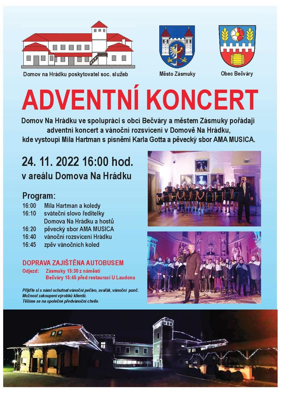 Domov Na Hrádku ve spolupráci s obcí Bečváry a městem Zásmuky pořádájí adventní koncert a rozsvícení v Domově Na Hrádku.