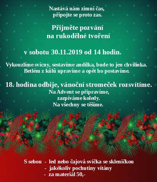 dovolujeme si Vás pozvat na slavnostní rozsvícení vánočního stromu, které se bude konat