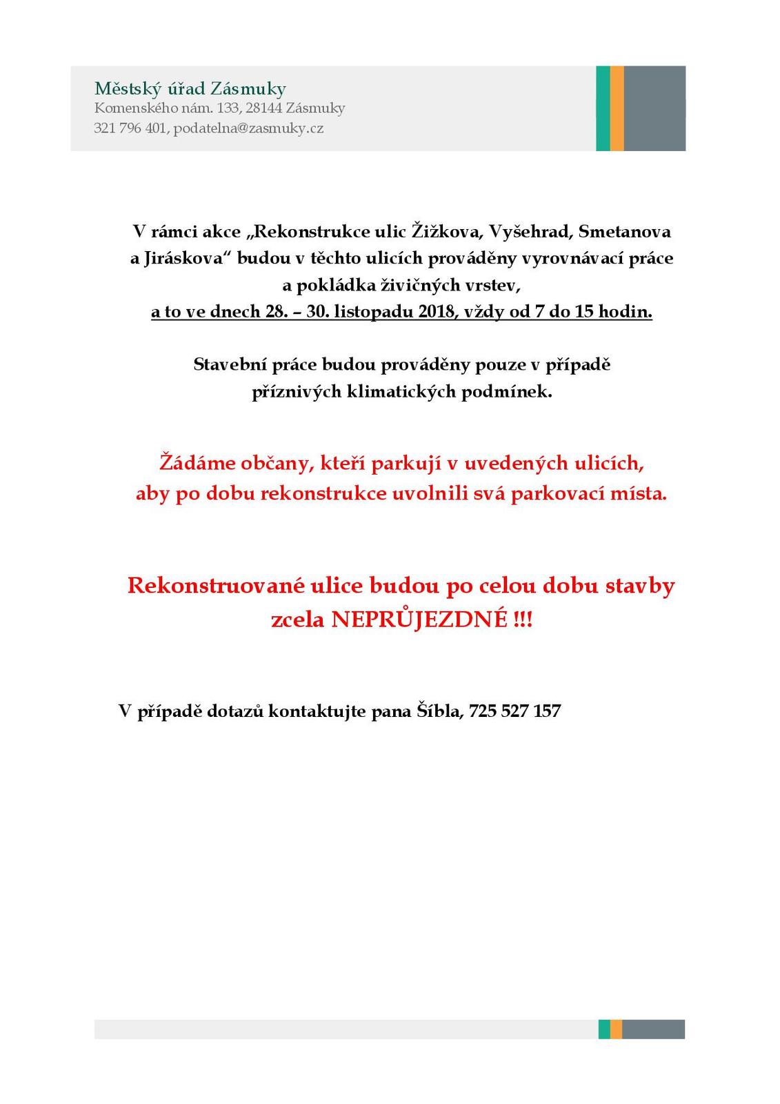 Informace k rekonstrukci ulic Žižkova, Smetanova,Jiráskova a Vyšehrad